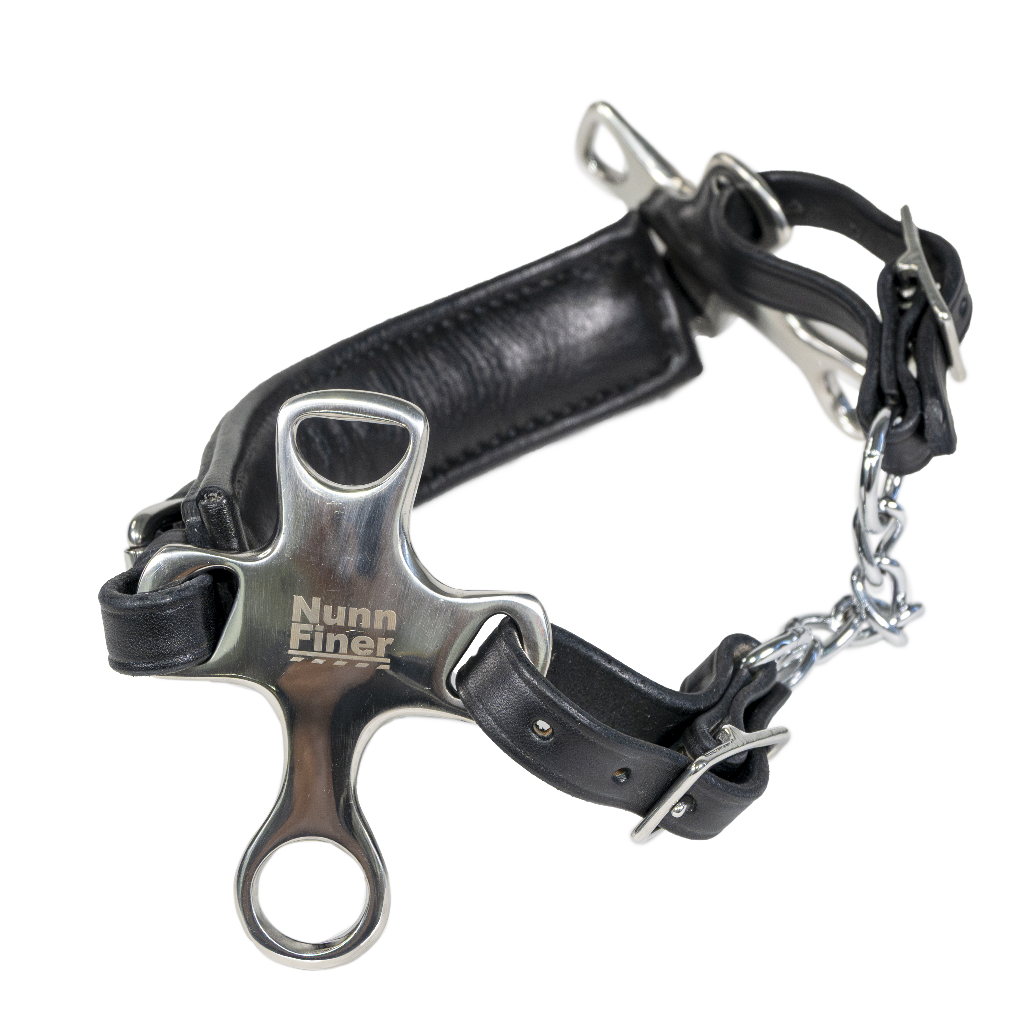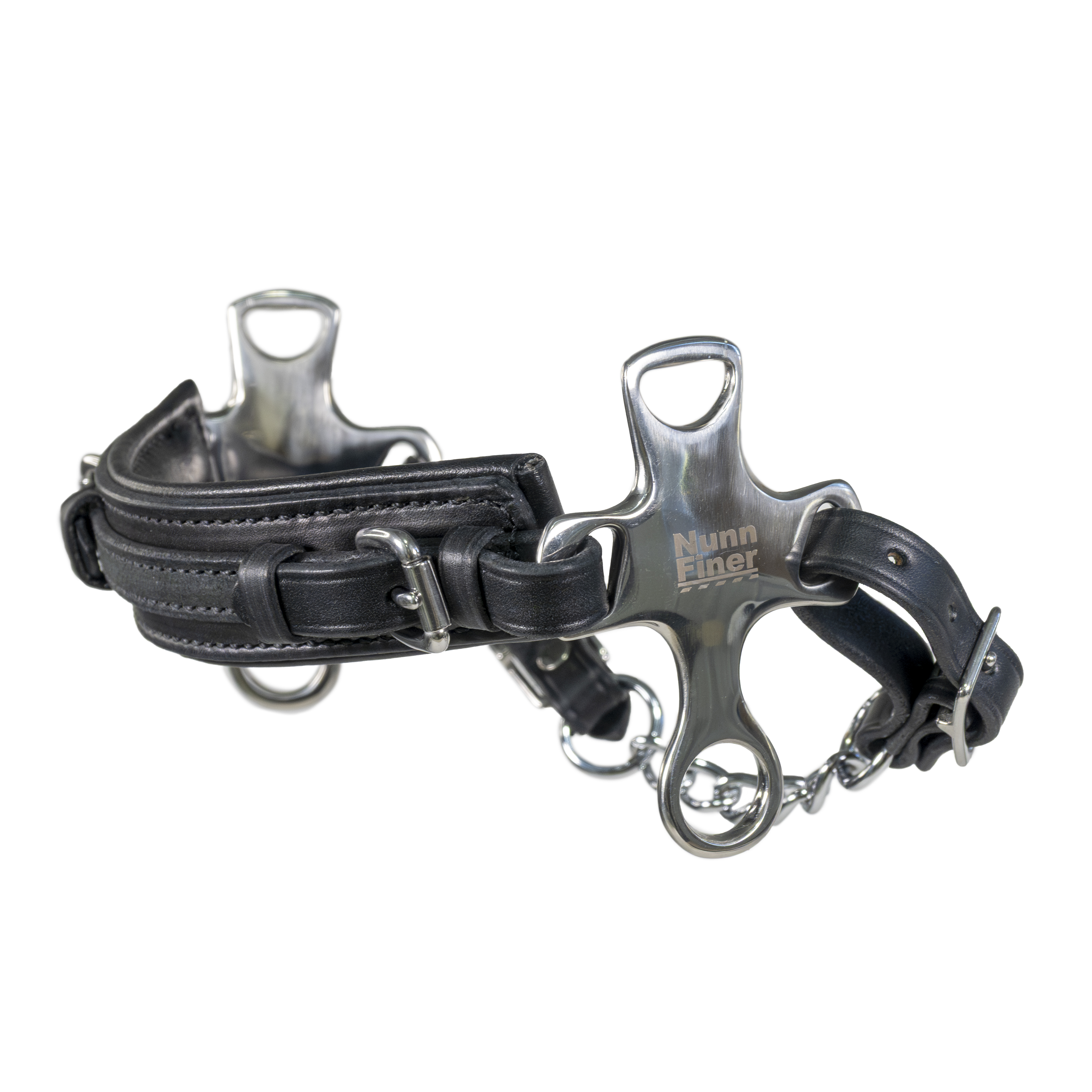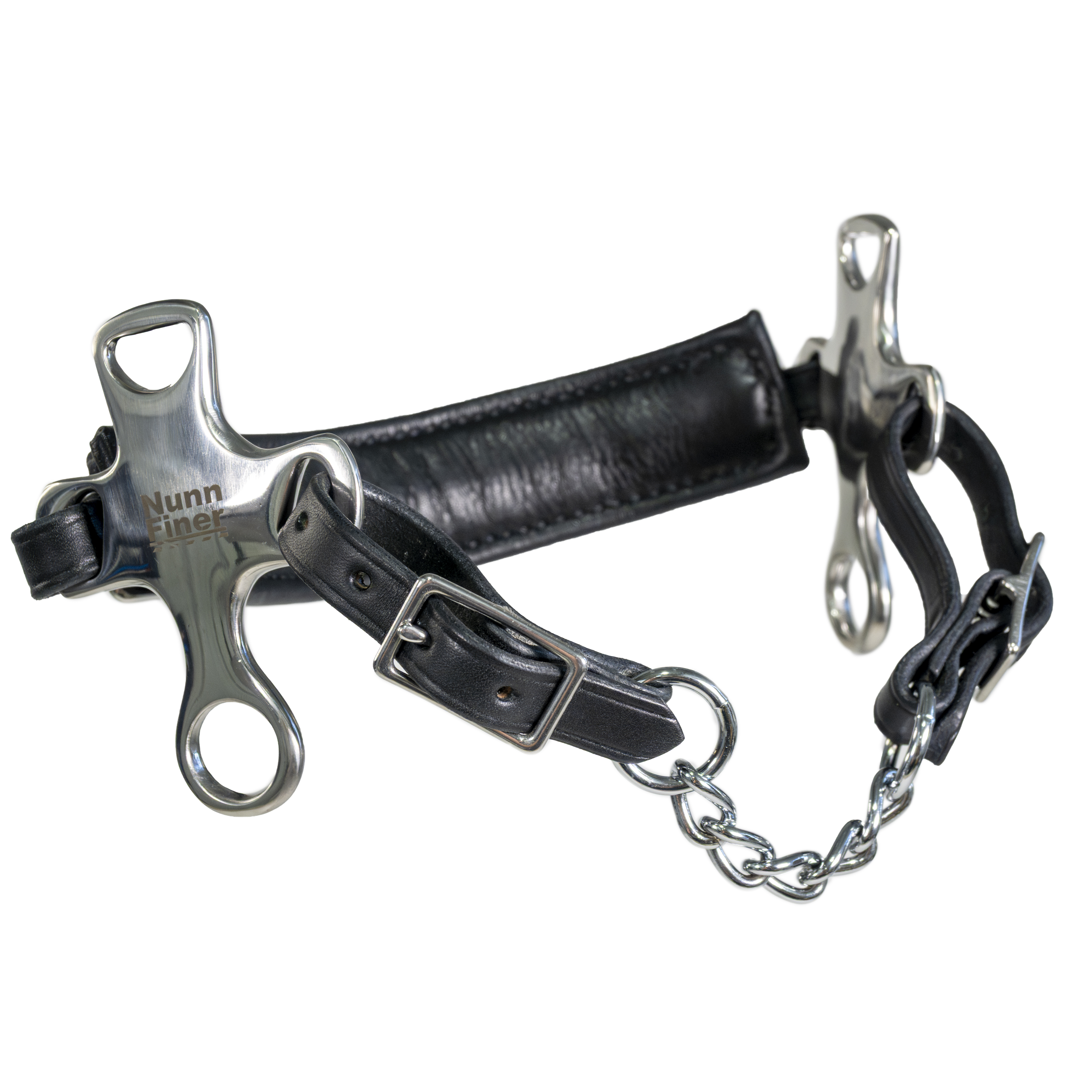 The Crossroad Hackamore is designed with nosebands that follow the natural contours of the horse’s face with wide, soft padding to ensure comfort. Not only crafted for optimum performance, but to look awesome as well. Stainless steel shank cheekpieces. American made with premium American Leather nosepiece and chin strap. Comes with your choice of a leather or chain curb. One-Year Workmanship Guarantee.
