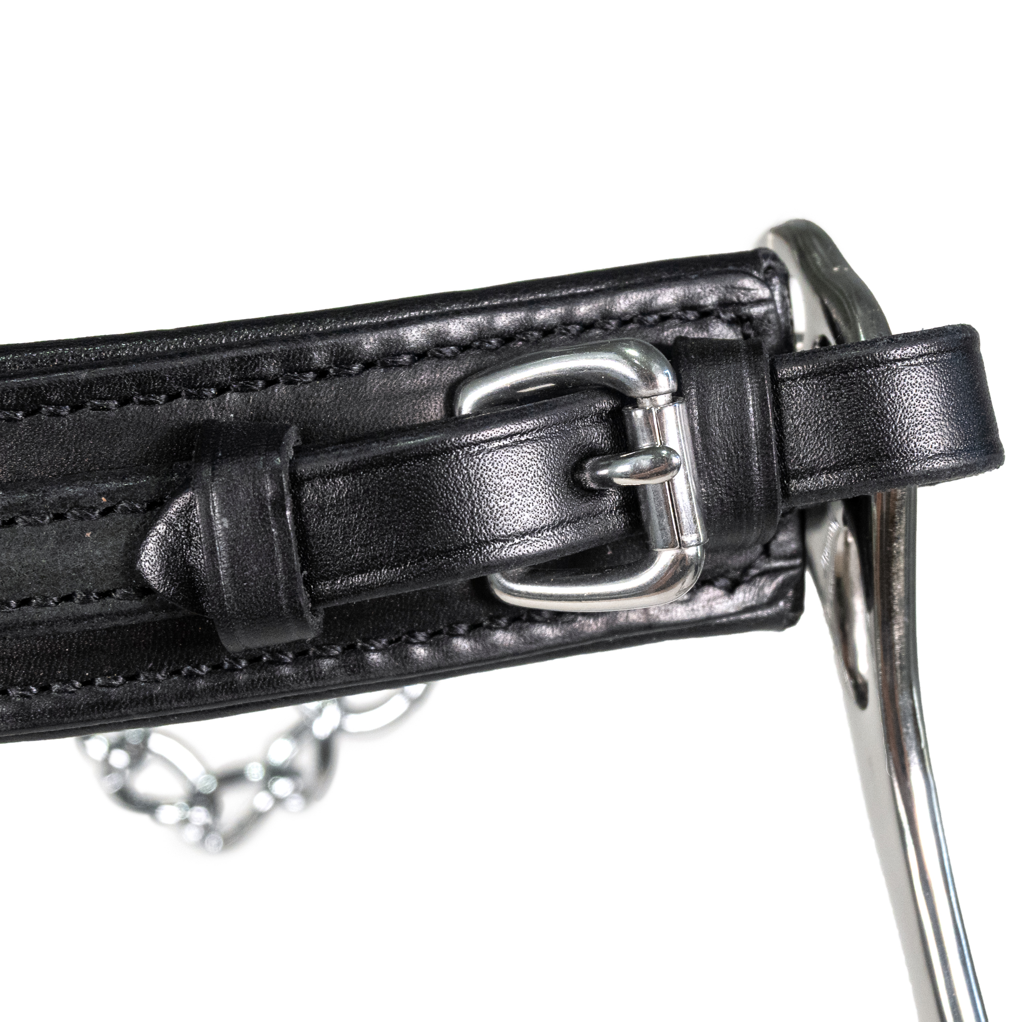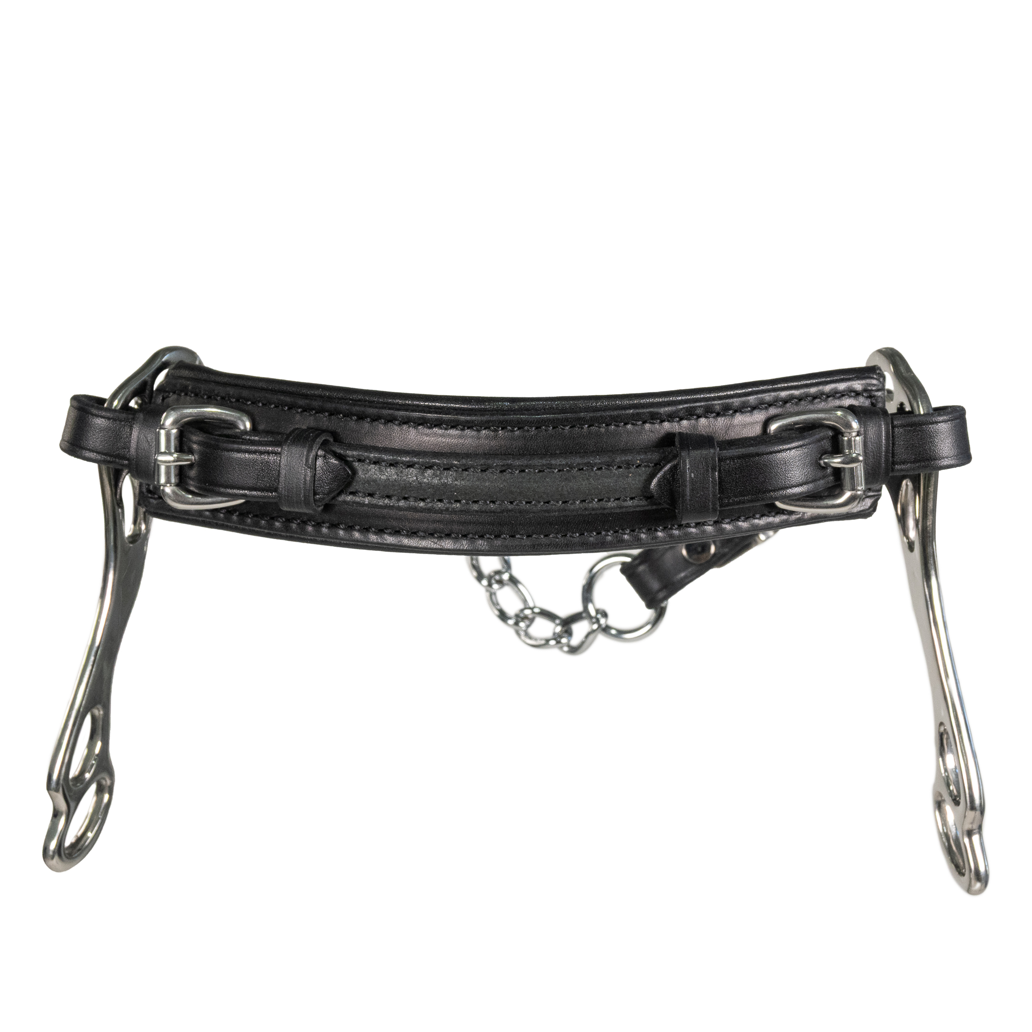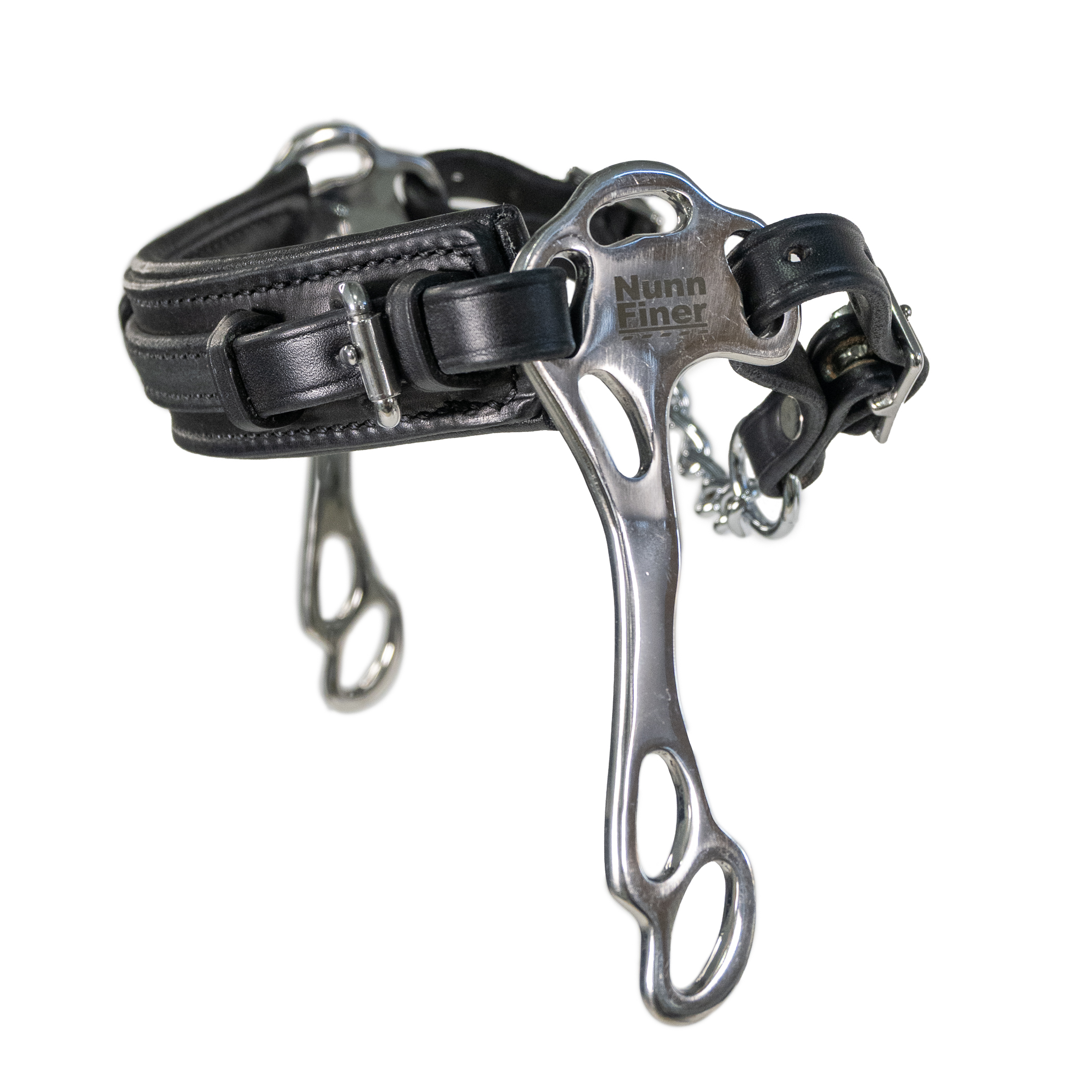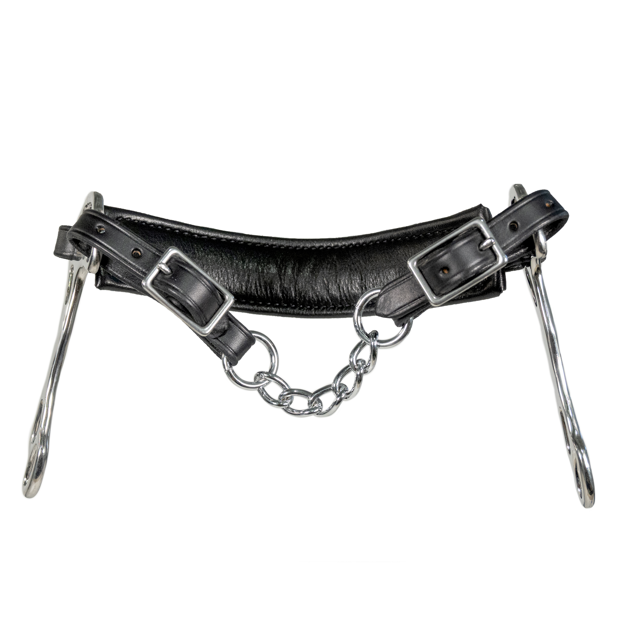 The Leveler Hackamore is designed with nosebands that follow the natural contours of the horse’s face with wide, soft padding to ensure comfort. Not only crafted for optimum performance, but to look awesome as well. Stainless steel shank cheekpieces. American made with premium American Leather nosepiece and chin strap. Comes with your choice of a leather or chain curb. One-Year Workmanship Guarantee.