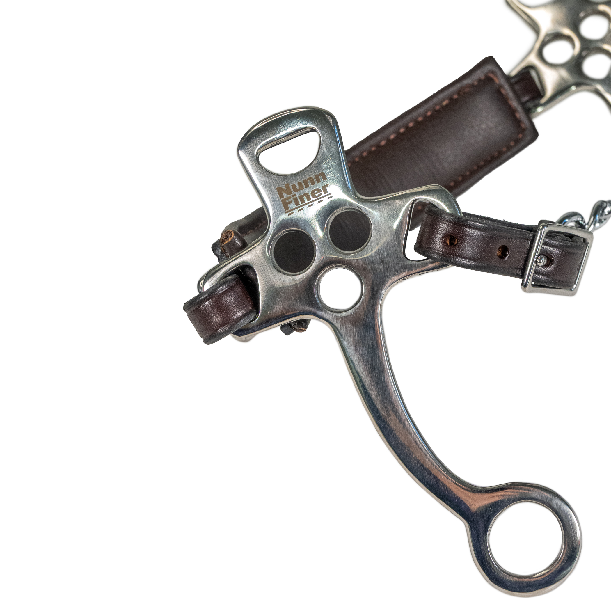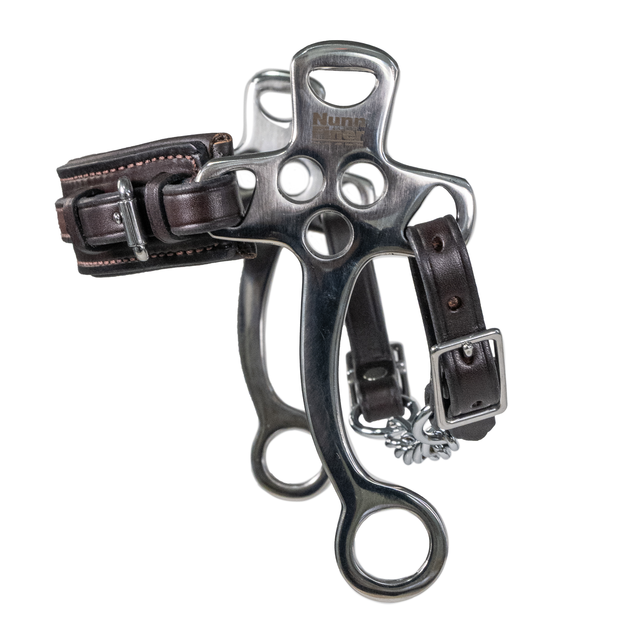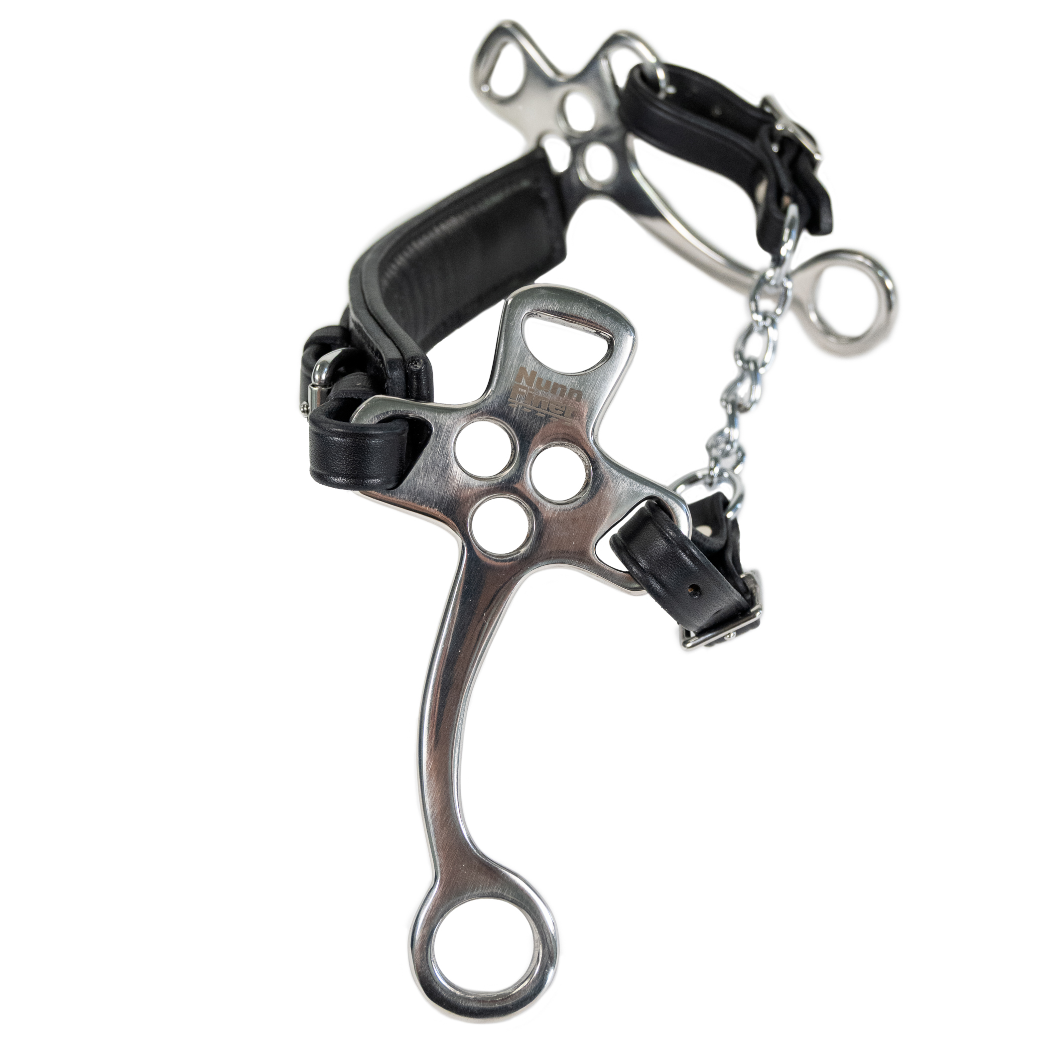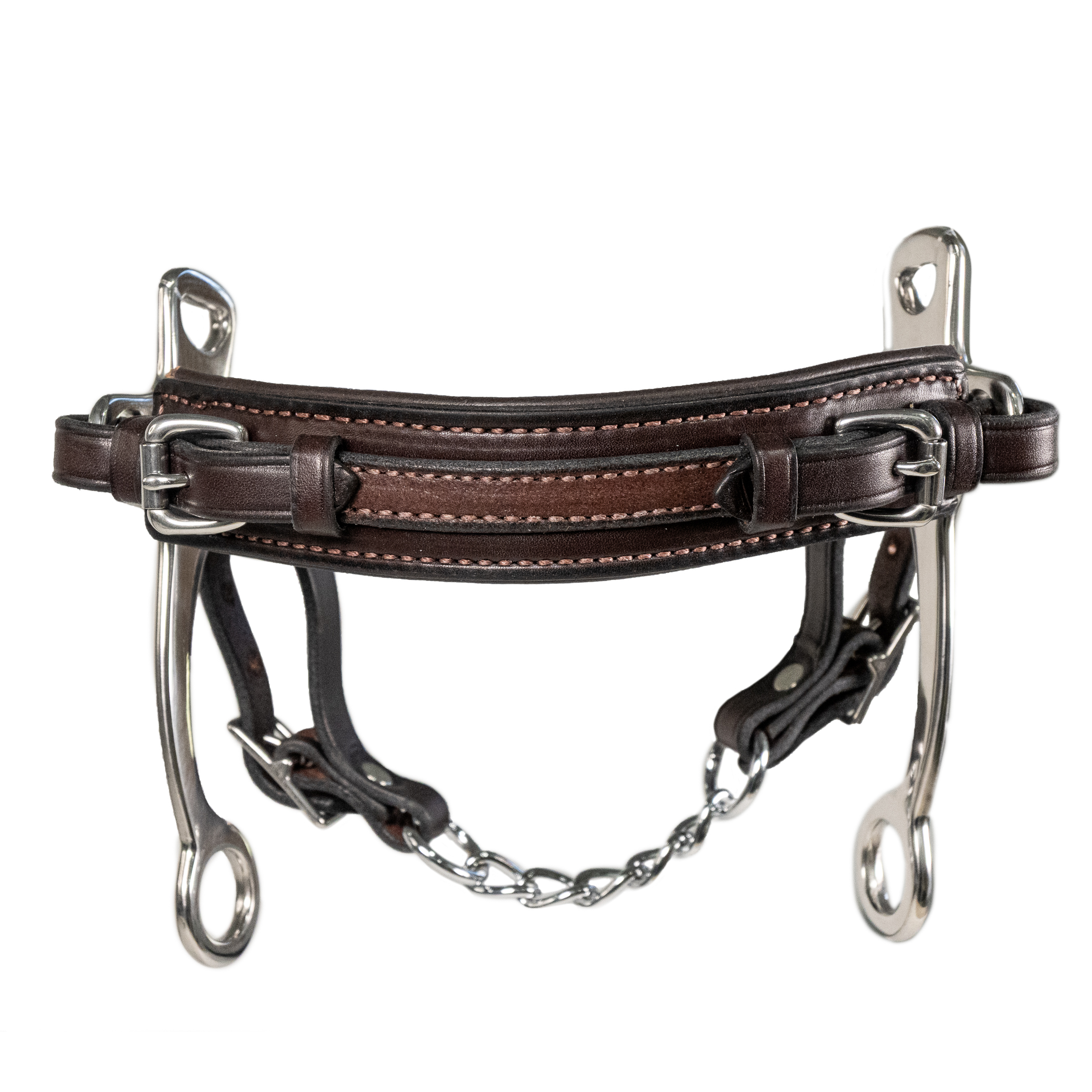 The Stealth Hackamore is designed with nosebands that follow the natural contours of the horse’s face with wide, soft padding to ensure comfort. Not only crafted for optimum performance, but to look awesome as well. Stainless steel shank cheekpieces. American made with premium American Leather nosepiece and chin strap. Comes with your choice of a leather or chain curb. One-Year Workmanship Guarantee.